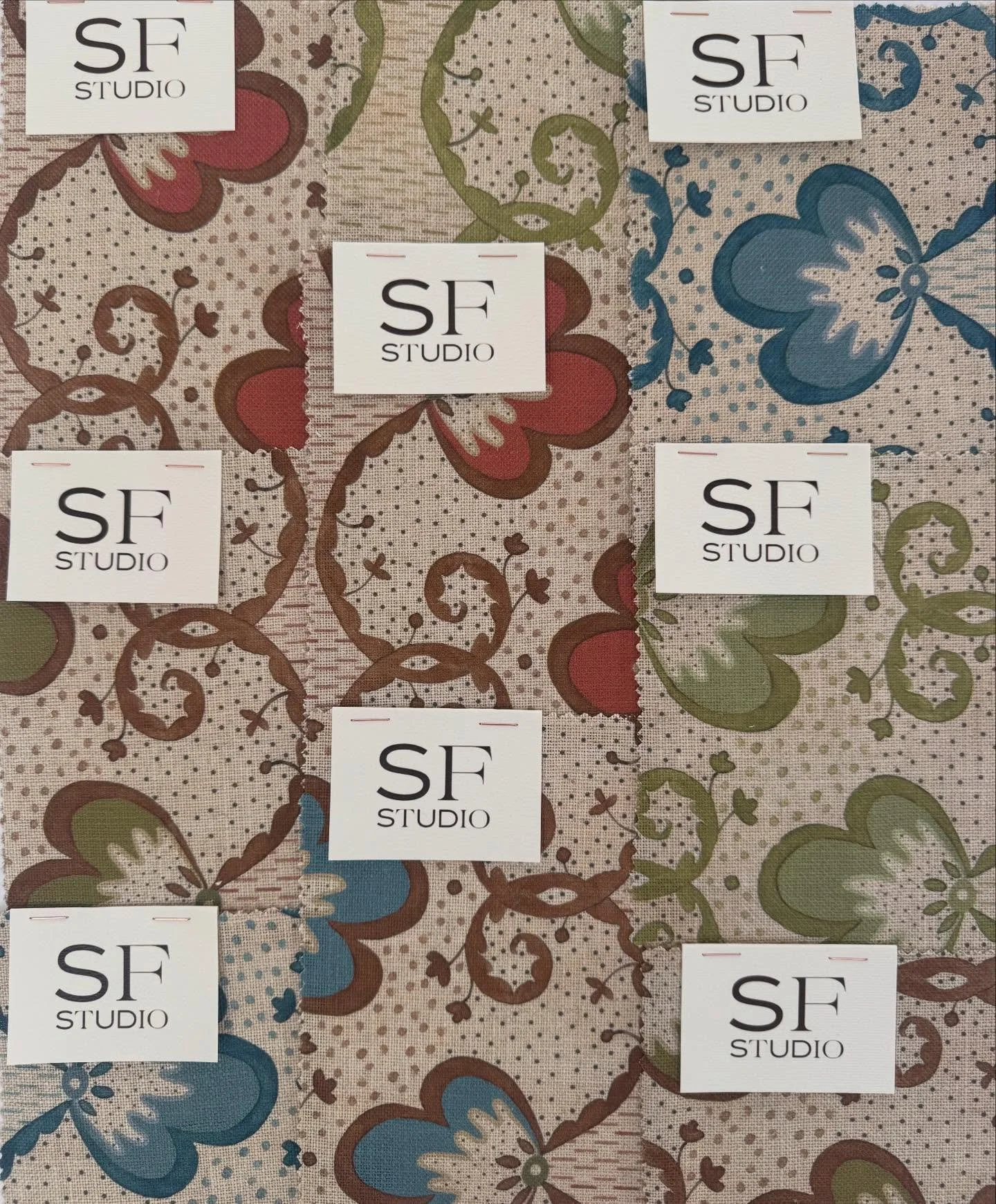 Sophia’s hand can be seen in every design. Each starts life as watercolour and ink, before being developed through a variety of printing methods and then digitally printed on linen.